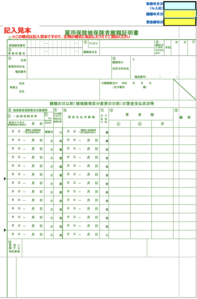 離職票の記載事項を見るとわかるように、これは離職証明書の内容を転記したものです。つまり、離職証明書がなければ離職票は作ることができないということです。
